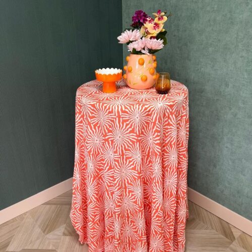 Perfect voor statafels en ideaal te combineren met verse bloemen, glaswerk in warme tinten of natuurlijke decoratie. Of je nu een zomerse receptie, diner of bruiloft organiseert, dit tafelkleed geeft je setting moeiteloos een unieke upgrade.