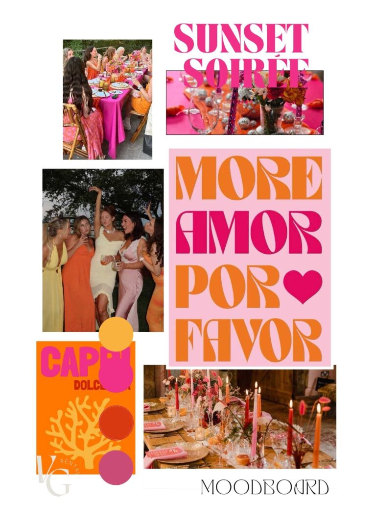 Het getoonde moodboard dient als inspiratie voor de sfeer en uitstraling. De exacte invulling is flexibel en stemmen we samen af op jullie diner, locatie en persoonlijke wensen. De uiteindelijke prijs is afhankelijk van het aantal personen en gekozen opties.